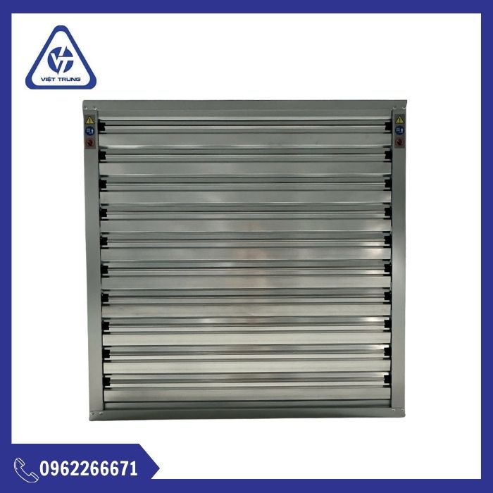 Hệ thống chớp kẽm tự động đóng/mở theo áp suất gió là điểm nhấn của quạt hút công nghiệp 1000×1000. Khi quạt hoạt động, chớp mở ra để thoát khí nóng; khi dừng, chớp đóng lại để ngăn nước mưa, bụi bẩn và côn trùng.