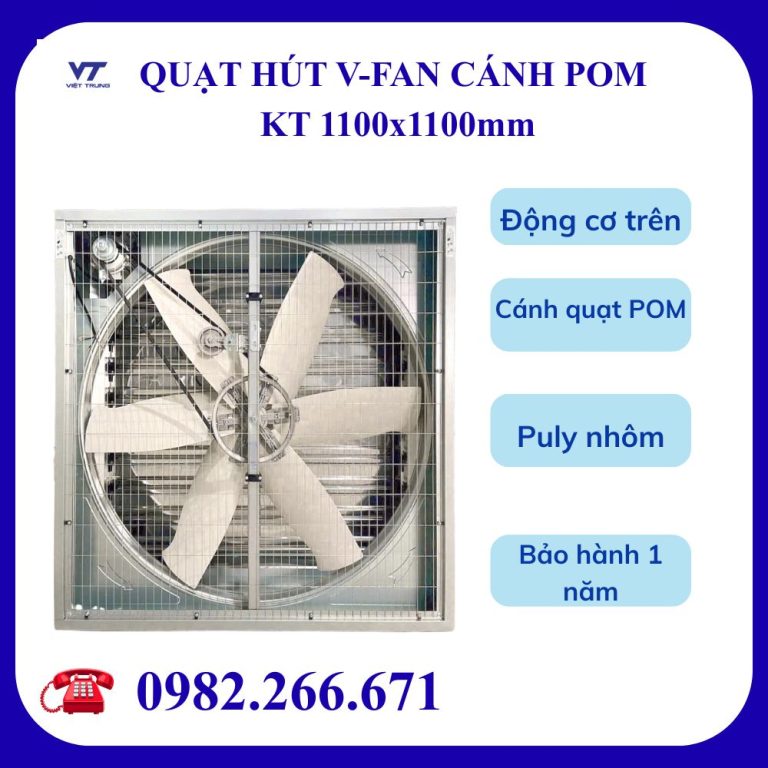 Việt Trung cam kết cung cấp QUẠT HÚT VUÔNG CÁNH POM 1100x1100mm chất lượng, giá tốt và hỗ trợ kỹ thuật tận nơi.